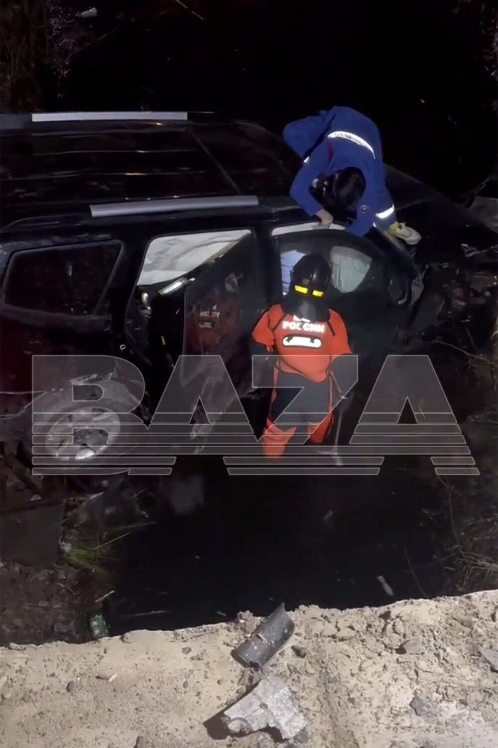 В Москве иномарка с людьми в салоне вылетела с моста. Кадры с места аварии опубликовал Telegram-канал Baza.