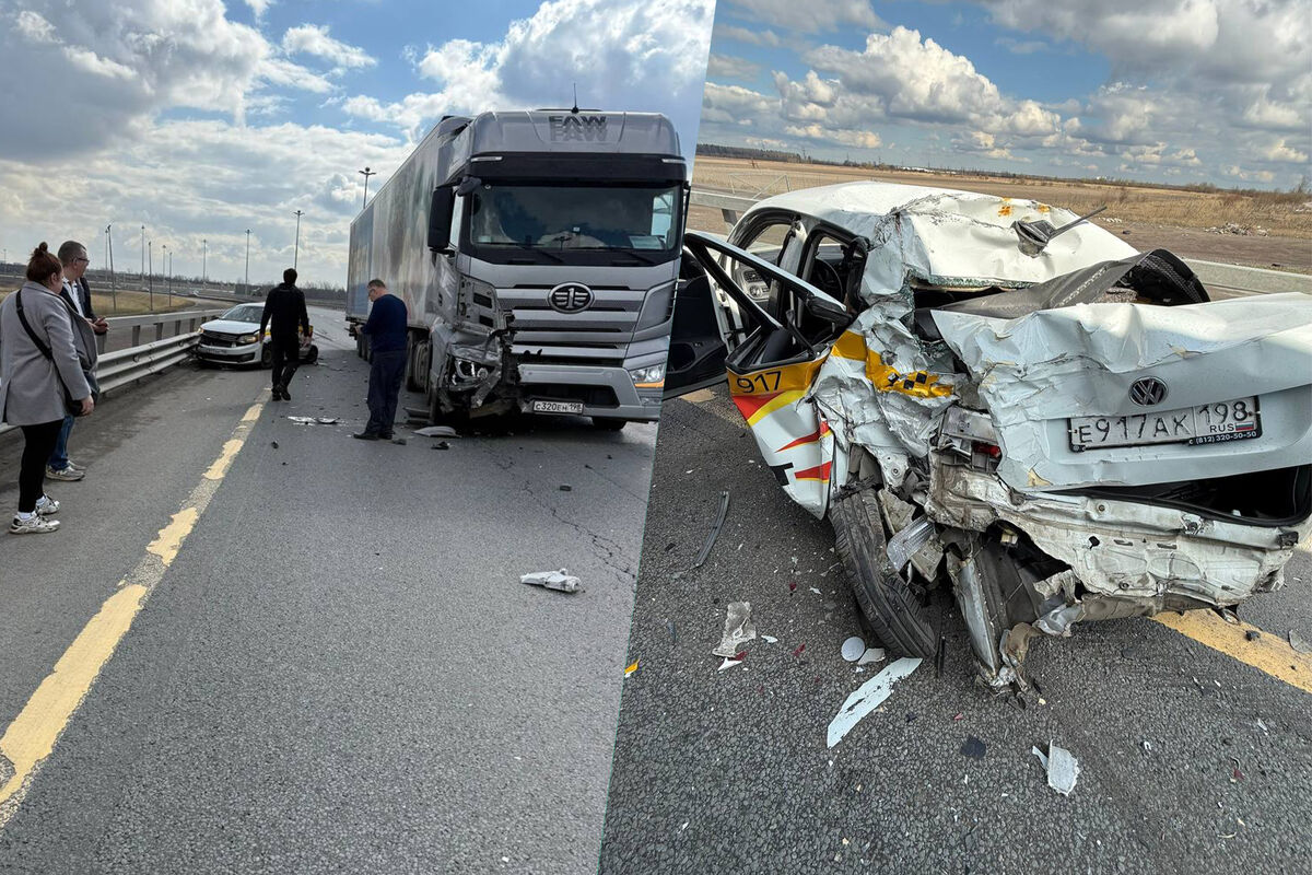 «Водитель такси остановился на ЗСД перед съездом на КАД-север и в него сзади влетела фура.Таксист разбил голову, но в целом жив, ему оказали первую помощь, вызвали скорую и работников ЗСД», – говорится в публикации.