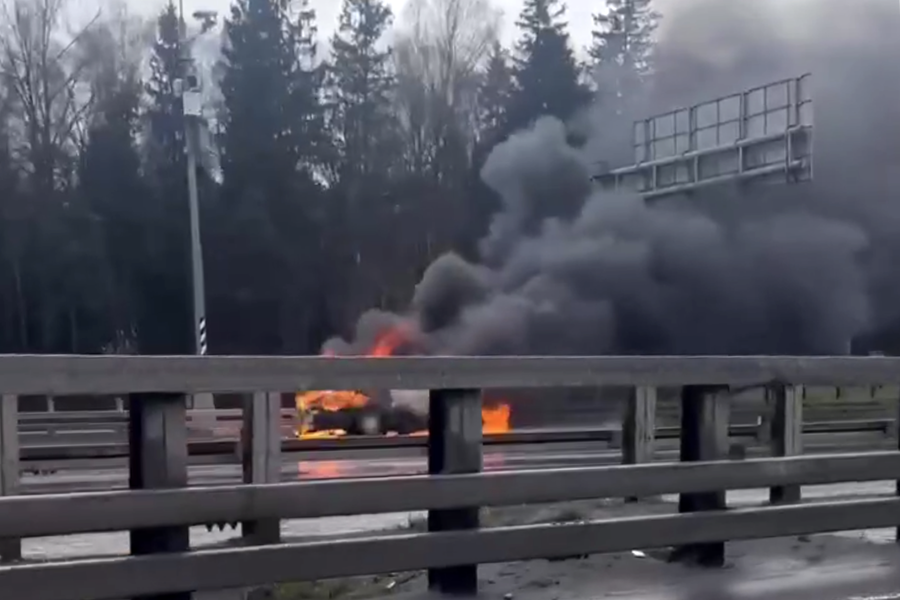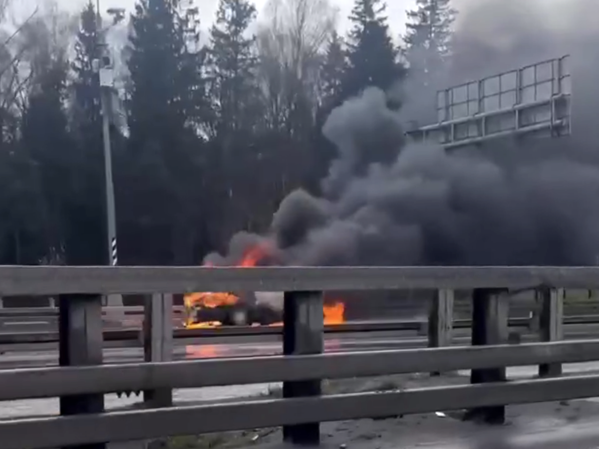 В Московской области перекрыли проезд для автомобилей из-за пожара на проезжей части. Кадры с места ДТП опубликовал Telegram-канал «Москва с огоньком».