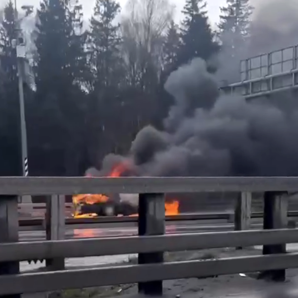 Видео: Киевское шоссе перекрыли из-за возгорания на дороге