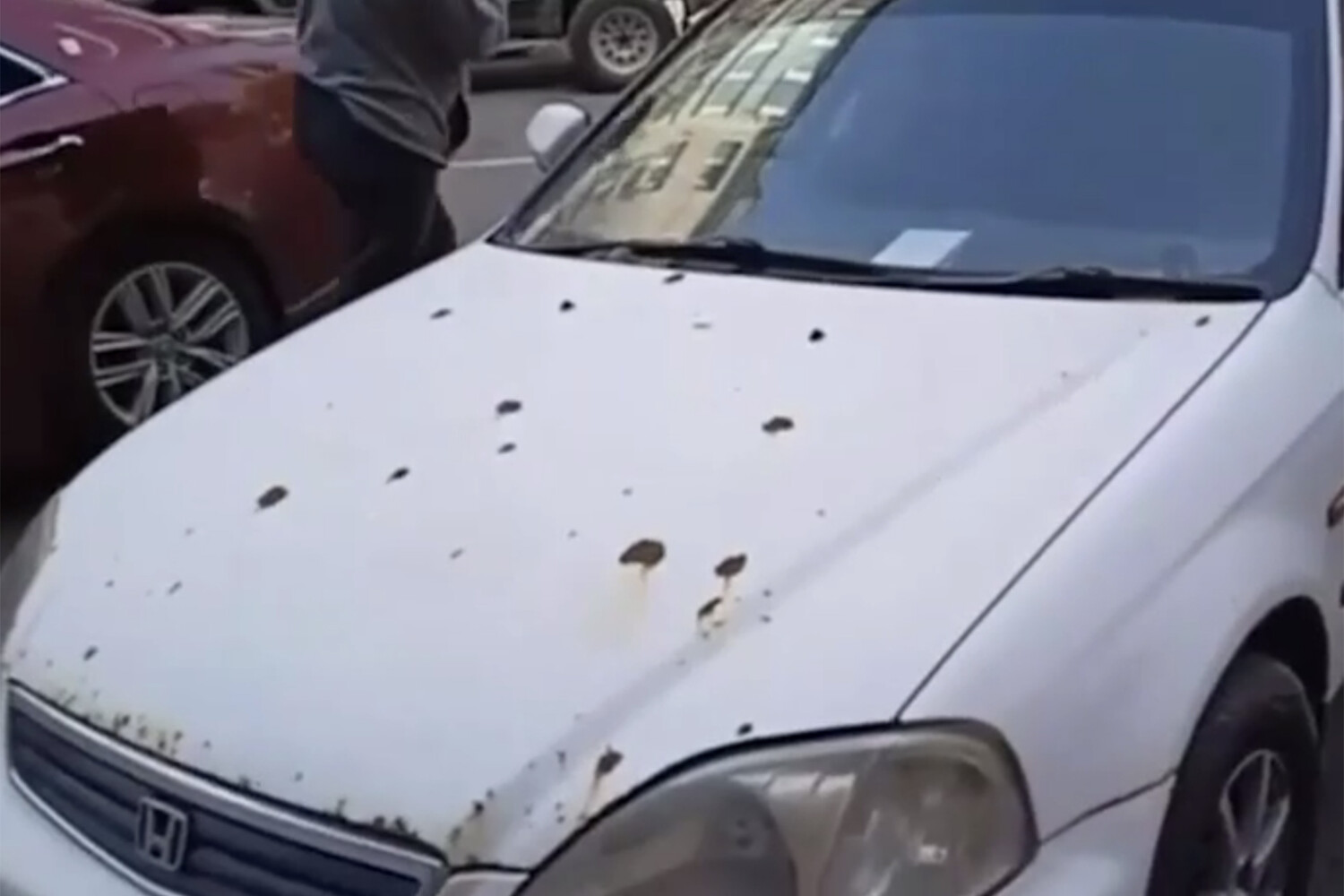 На размещенных в сети кадрах слышно, как водитель Honda оскорбляет человека и игнорирует просьбы освободить место.