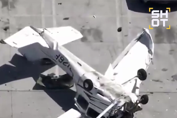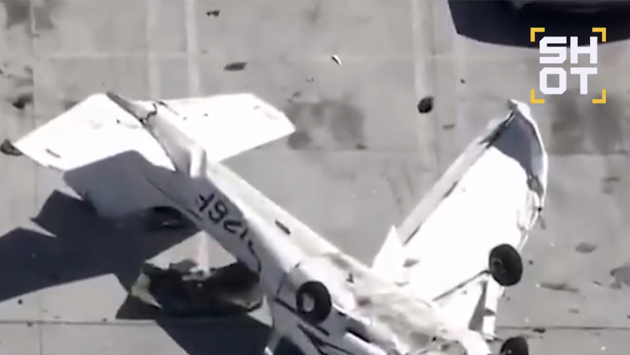 Видео: самолет опрокинулся в воздухе и упал на парковку возле жилого дома