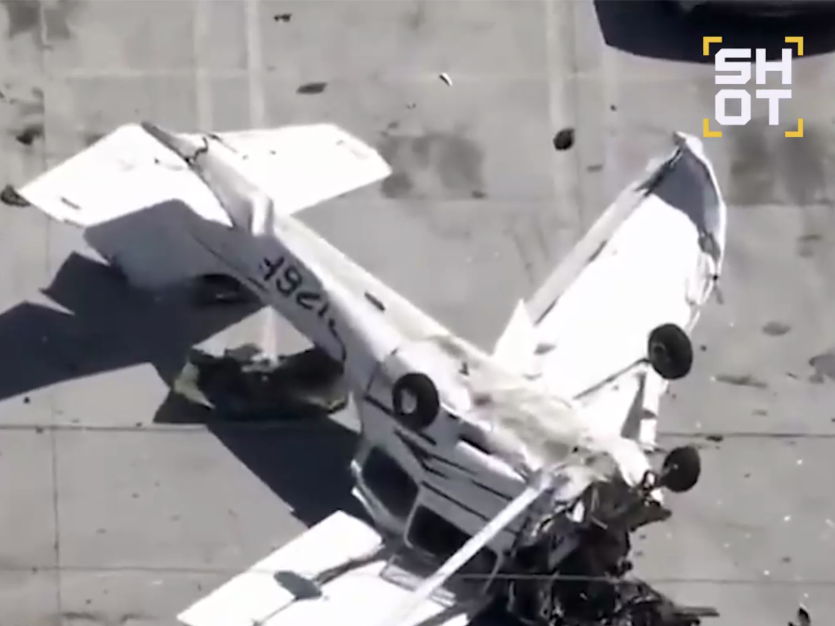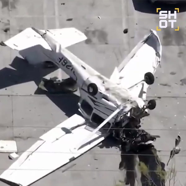 SHOT: самолет задел провода и рухнул на парковку около жилого дома в США