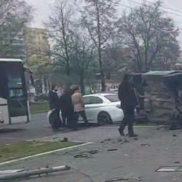 На кадрах видно, как легковая машина на скорости врезается в автомобиль, который двигается по соседней полосе, после чего обе иномарки выезжают на обочину. На записи также заметно, что в результате ДТП машины получили серьезные повреждения, при этом автомобильные детали разлетелись по дороге.