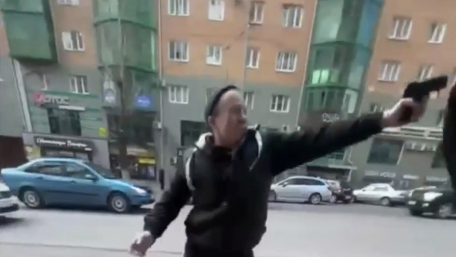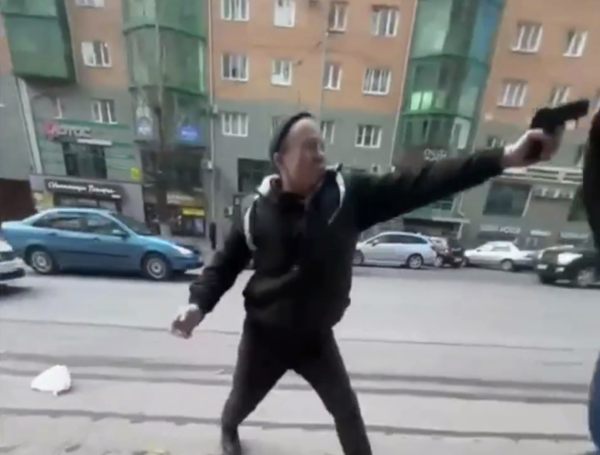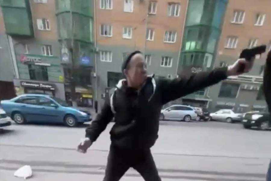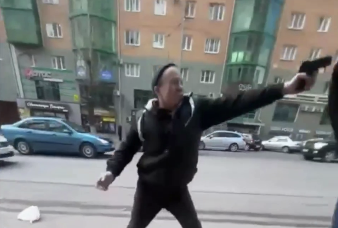Пешеходы запечатлели инцидент на камеру. На кадрах видно, как люди дерутся на проезжей части, при этом в один момент один из мужчин перекидывает своего оппонента, которые делает кувырок в воздухе и падает на асфальт. Далее на записи заметно, как нарушитель достает пистолет и начинает целиться в мужчину.