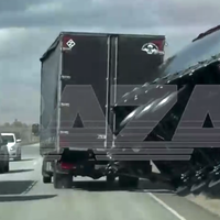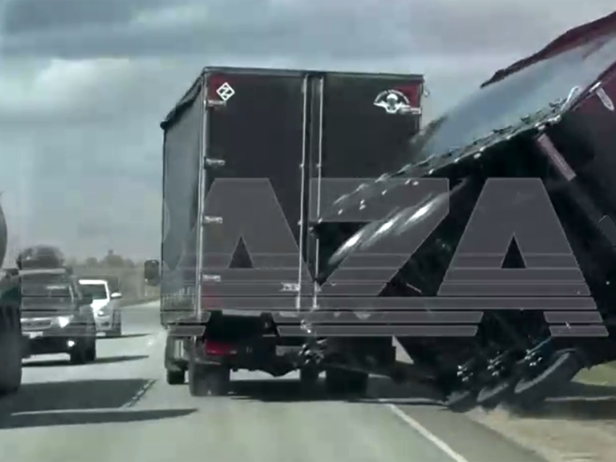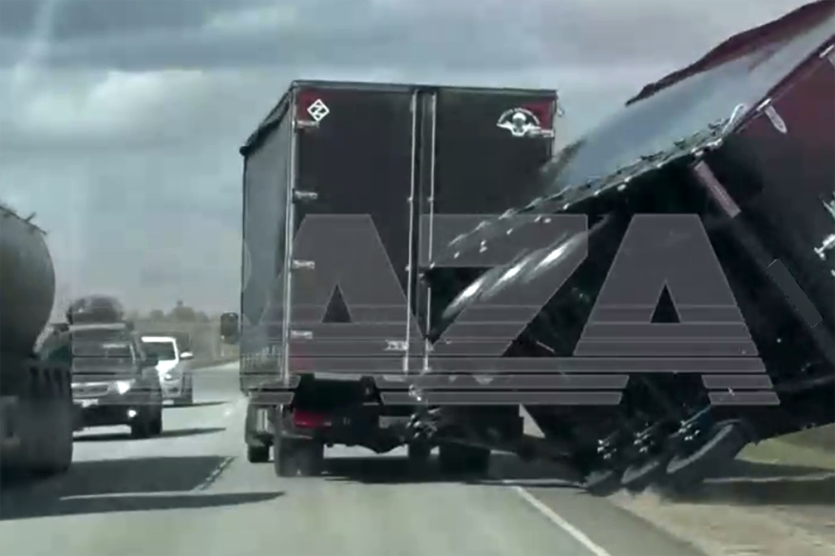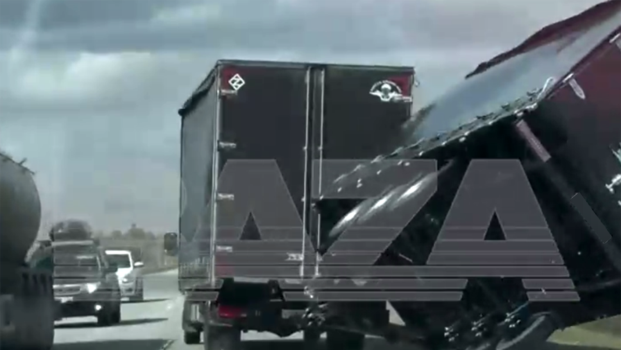 Очевидцы запечатлели инцидент на видео. На кадрах видно, как грузовик за несколько секунд переворачивается из-за сильного ветра и падает на боковую часть.