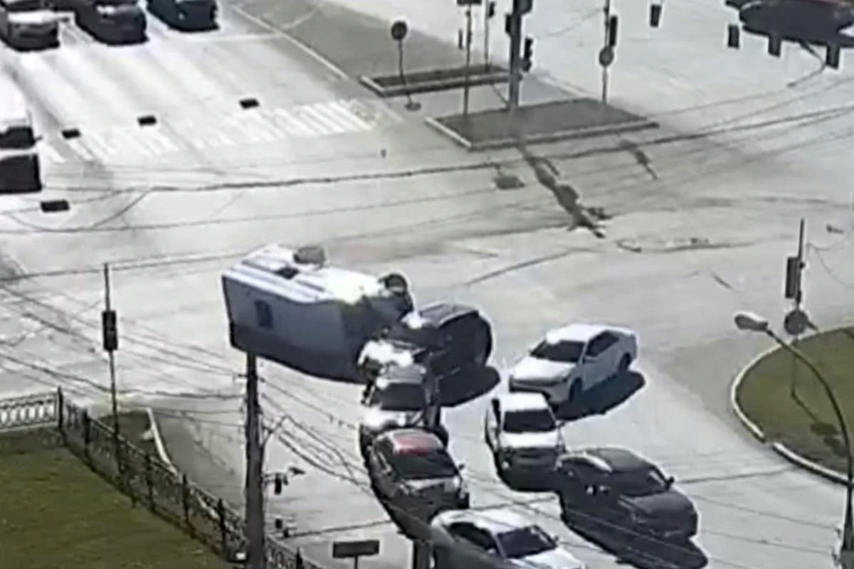 МВД: в Астрахани маршрутка перевернулась после столкновения с легковушкой