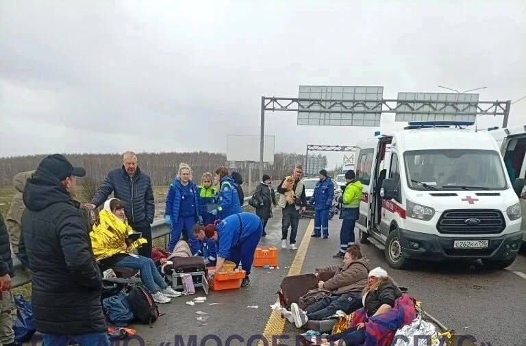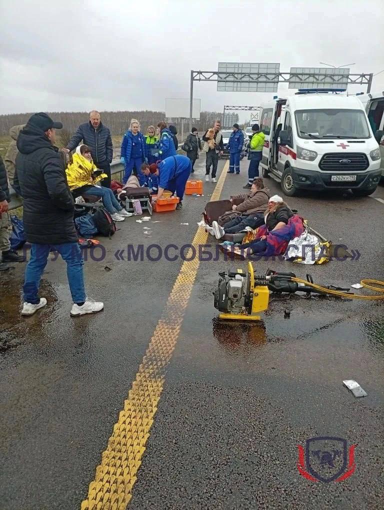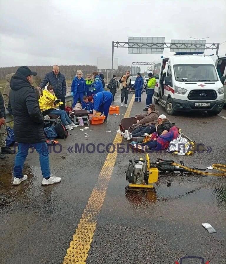 На размещенных в сети кадрах видно, что на место прибыли спасатели, при этом пострадавшие сидят на проезжей части. По данным канала, в настоящее время движение транспорта в районе аварии затруднено. Сотрудники правоохранительных органов устанавливают все обстоятельства произошедшего.