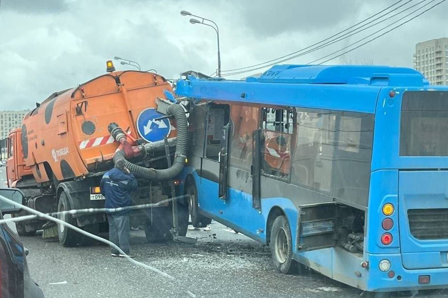 «ДТП с участием пассажирского автобуса и «Камаза» городских служб произошло на Варшаском шоссе в районе Дрожжино. По информации «Осторожно, Москва», предварительно, пострадали пять человек», – говорится в публикации.