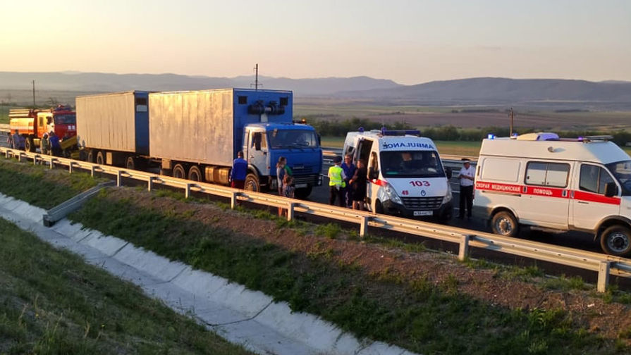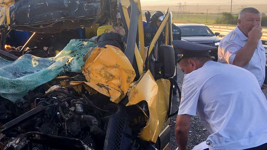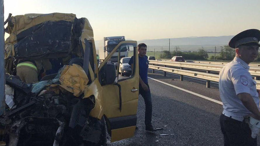 В Крыму на трассе «Таврида» в районе села Русаковка в Белогорском районе столкнулся микроавтобус с грузовиком. Всего в микроавтобусе было 18 человек. В результате аварии погибли девять человек, еще девять человек получили ранения. Отмечается, что среди пострадавших оказалась беременная девушка 18 лет, ее состояние оценивается как средней тяжести. По предварительным данным, водитель микроавтобуса уснул за рулем и врезался в едущий впереди грузовик. Следственный комитет России возбудил уголовное дело об оказании услуг, не отвечающих требованиям безопасности (ст. 238 УК РФ). Это второе уголовное дело по данному происшествию. Ранее МВД возбудило уголовное дело по ч. 5 ст. 264 УК РФ («Нарушение правил дорожного движения и эксплуатации транспортных средств»). Последствия ДТП — в фотогалерее «Газеты.Ru».