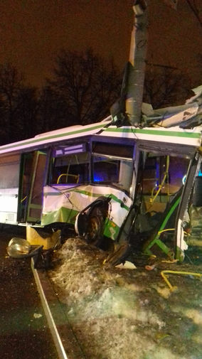 Согласно имеющейся информации, инцидент произошел примерно в 23.00 недалеко от д. 50, корп. 1 по проспекту Андропова. Водитель легкового автомобиля при выполнении резкого маневра столкнулся с автобусом. После этого автобус отбросило на столб. «В автобусе пострадали три человека, им оказывают медицинскую помощь», — заявили в ведомстве. Как видно на кадрах с мета происшествия, столб буквально разорвал переднюю часть транспортного средства пополам.