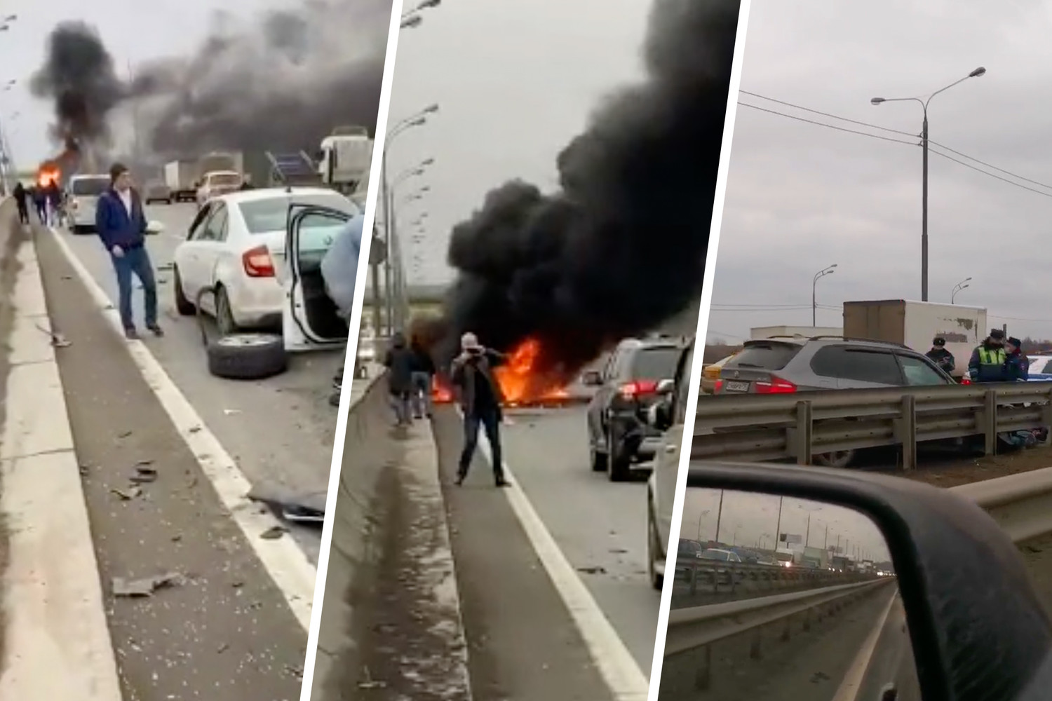 Последствия массового ДТП на МКАД — в фотогалерее «Газеты.Ru»