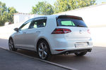 Внешне GTI от обычного Golf, как и повелось, отличается не очень сильно. У заряженной версии есть более массивный передний бампер c черными стрелами, фирменная красная полоска, проникающая в плафоны оптики, два хромированных патрубка выхлопной системы вместо одного. Ну и конечно, более мощные тормозные суппорты, выкрашенные в красный. Рядовой автолюбитель в потоке может по внешним признакам и не понять, почему выражение лица водителя хетчбэка говорит о его предельной сконцентрированности на том, что происходит на дороге.