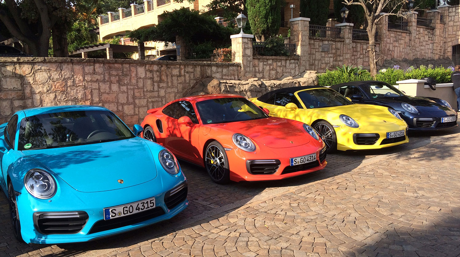 Наши породистые спорткары стоят у гостиницы Four Seasons и сверкают, словно леденцы на солнце. Вот Porsche 911 Turbo Cabriolet и Carrera 4S в желтом цвете Racing Yellow, рядом — красная Targa 4S Carmine Red, иссиня-сапфировый Porsche 911 Turbo Saphire Blue Metallic. Самый сумасшедший и мощный — Porsche 911 Turbo S в бирюзовом исполнении Miami Blue. Помню, чтобы в детстве добиться такого волшебного цвета для своего автомобильного рисунка, мне приходилось изводить два карандаша, чередуя салатовый и голубой. Готовый шедевр я укладывала под подушку, загадывая, чтобы за ночь рисунок вырос в настоящее авто.