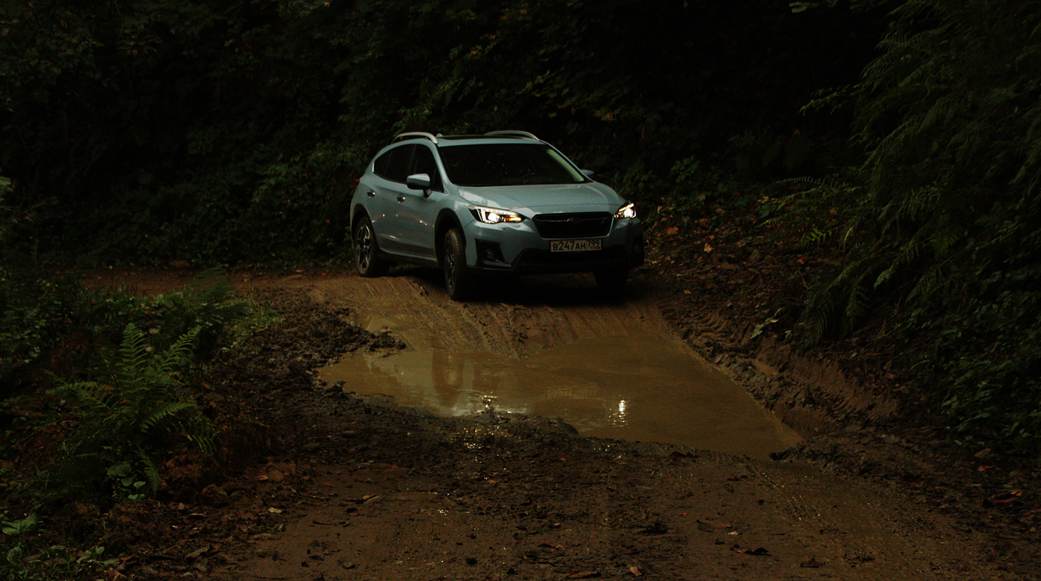В отличие от скромного выступления на междугороднем шоссе, на проселке кроссовер чувствует себя в своей стихии. Плохое и очень плохое покрытие не проблема. Ямы, крупные булыжники и ручьи не беда. Такой мирный на трассе оппозитный мотор уверенно тащит полторы тонны металла и пластика в гору по грязи и щебню, что делает честь приподнятому городскому хэтчбеку, который когда-то стал чуть более внедорожной версией Subaru Impreza.