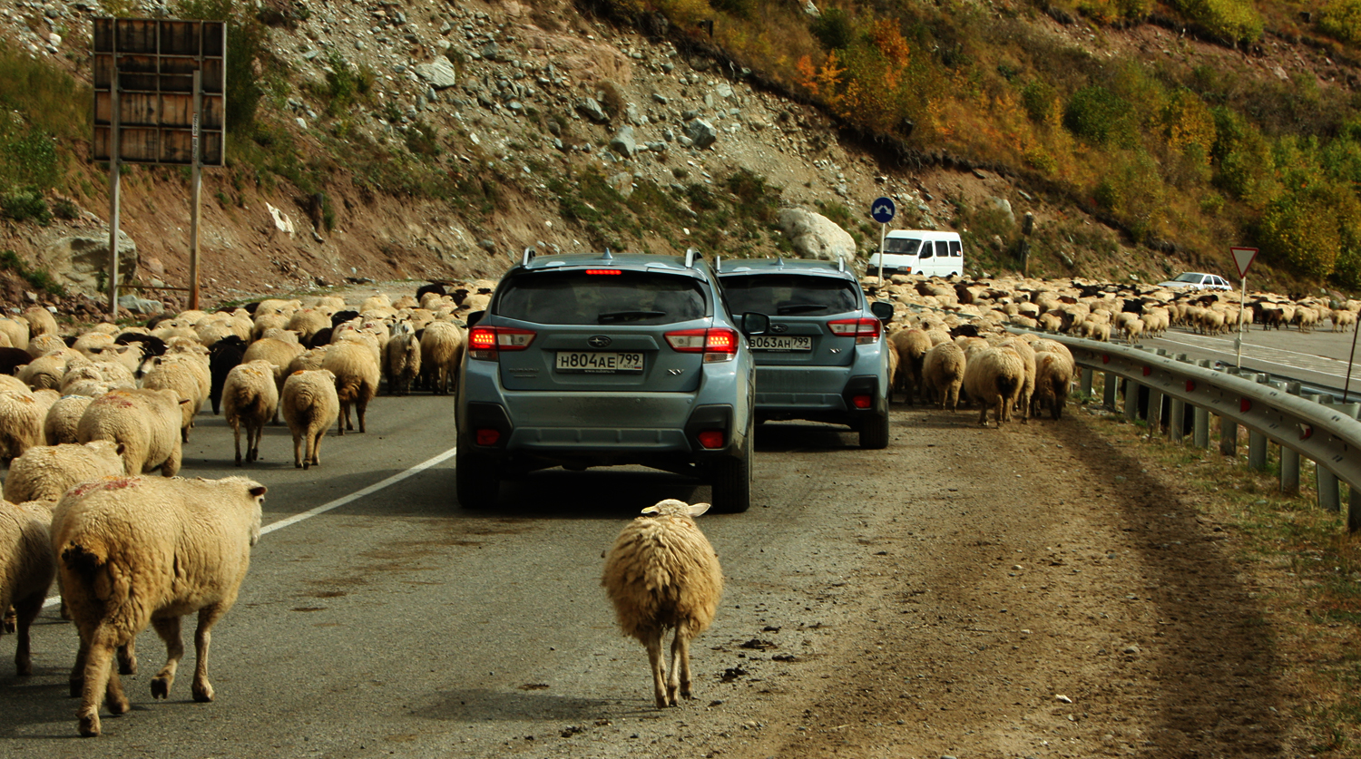 Тест-драйв начинается в аэропорту Минеральных Вод — ряд сверкающих оранжевых и светло-голубых японских кроссоверов традиционно контрастирует с местным автопарком, где преобладают черные иномарки и белые «Лады» всех мастей. Спустя пару часов после начала маршрута хочется вспомнить, что же там написано в книжке о правилах дорожного движения и есть ли там исключения для некоторых регионов. Обгон по встречной полосе через сплошную? На повороте? На подъеме? Задним ходом? Со скоростью 200 км/ч? Остановка посреди полосы? Езда между полос? Кажется, что главное для водителя на Кавказе — не делать это все на глазах инспектора.