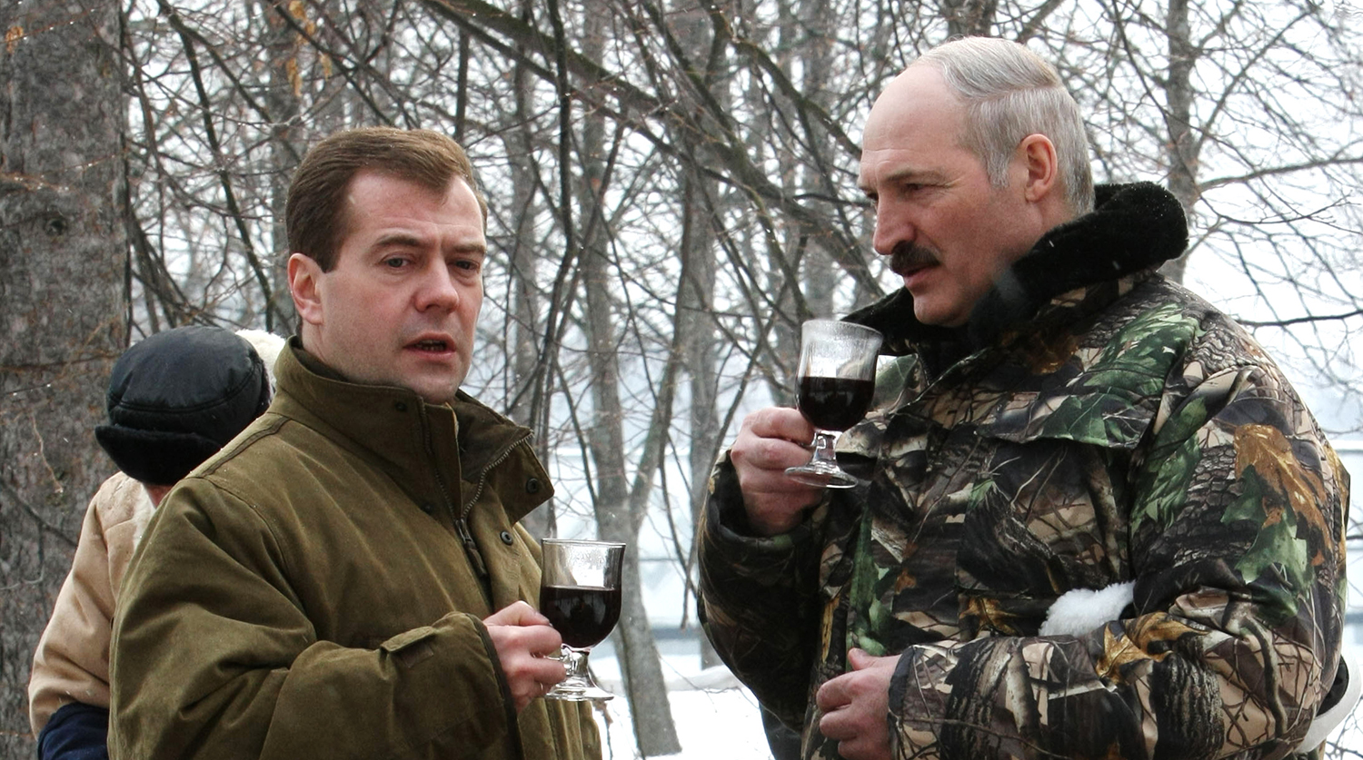 Президенты России и Белоруссии Дмитрий Медведев и Александр Лукашенко во время прогулки в резиденции «Русь» в Тверской области, 2009 год