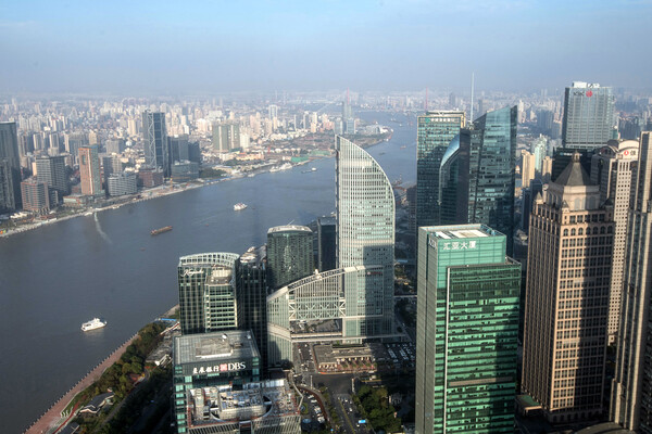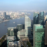 Вид со смотровой площадки телебашни «Восточная жемчужина» на город Шанхай