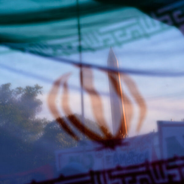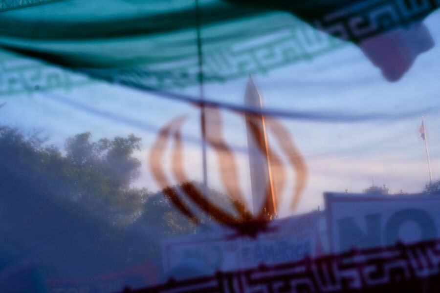 Флаг Ирана на фоне Монумента Вашингтона, 7 апреля 2026 года