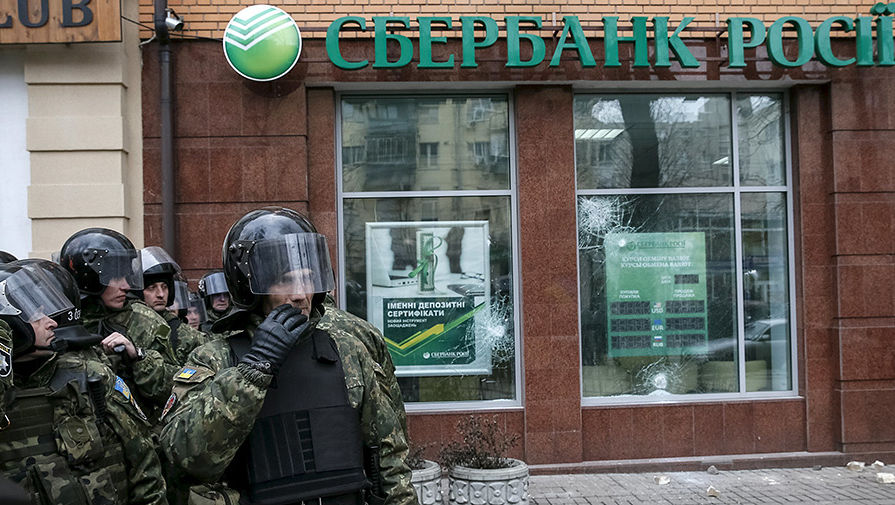 Как сообщает «Украинская правда», закидавшие брусчаткой офис Ахметова в Киеве напали на отделение Сбербанка.