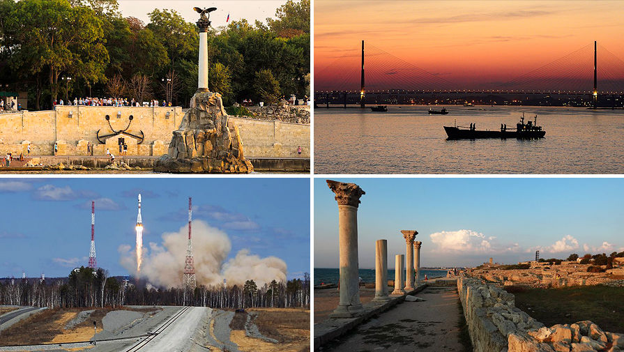 Севастополь представляют памятник затопленным кораблям и Херсонес Таврический.