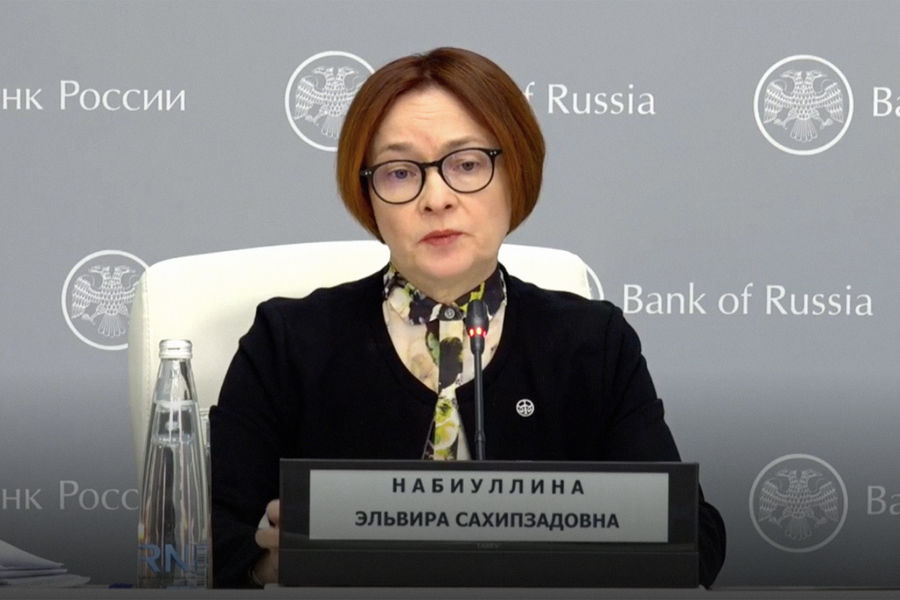 Председатель Банка России Эльвира Набиуллина на пресс-конференцию по итогам заседания совета директоров ЦБ надела брошь, на которой изображена фигура, похожая на весы. В пятницу регулятор повысил ключевую ставку на 1 процентный пункт до 9,5% годовых.