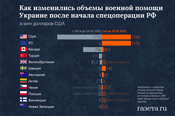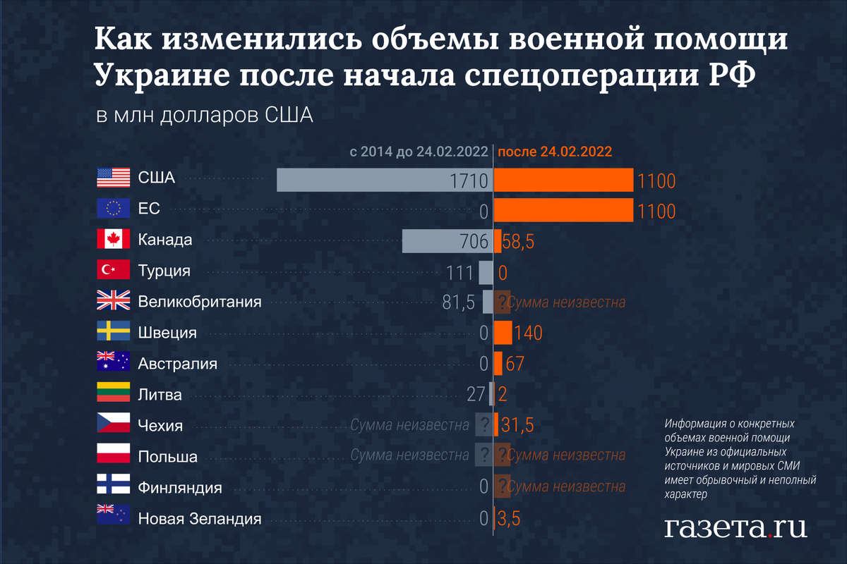 24 февраля президент РФ Владимир Путин объявил о начале спецоперации по защите Донбасса в ответ на просьбу о помощи глав ДНР и ЛНР. Ряд стран, в том числе США, Великобритания и ФРГ, стали оказывать Киеву военную и финансовую помощь.
