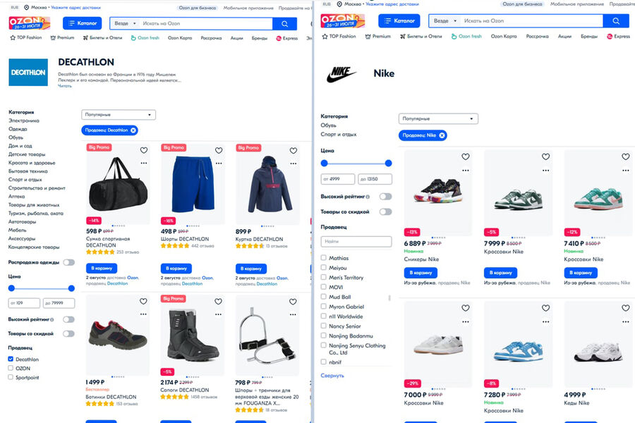 В маркетплейсах не ответили на вопрос «Газеты.Ru», планируют ли бренды приостановить работу на их площадках. В пресс-службе OZON подтвердили, что товары Nike и Decathlon действительно представлены в продаже.