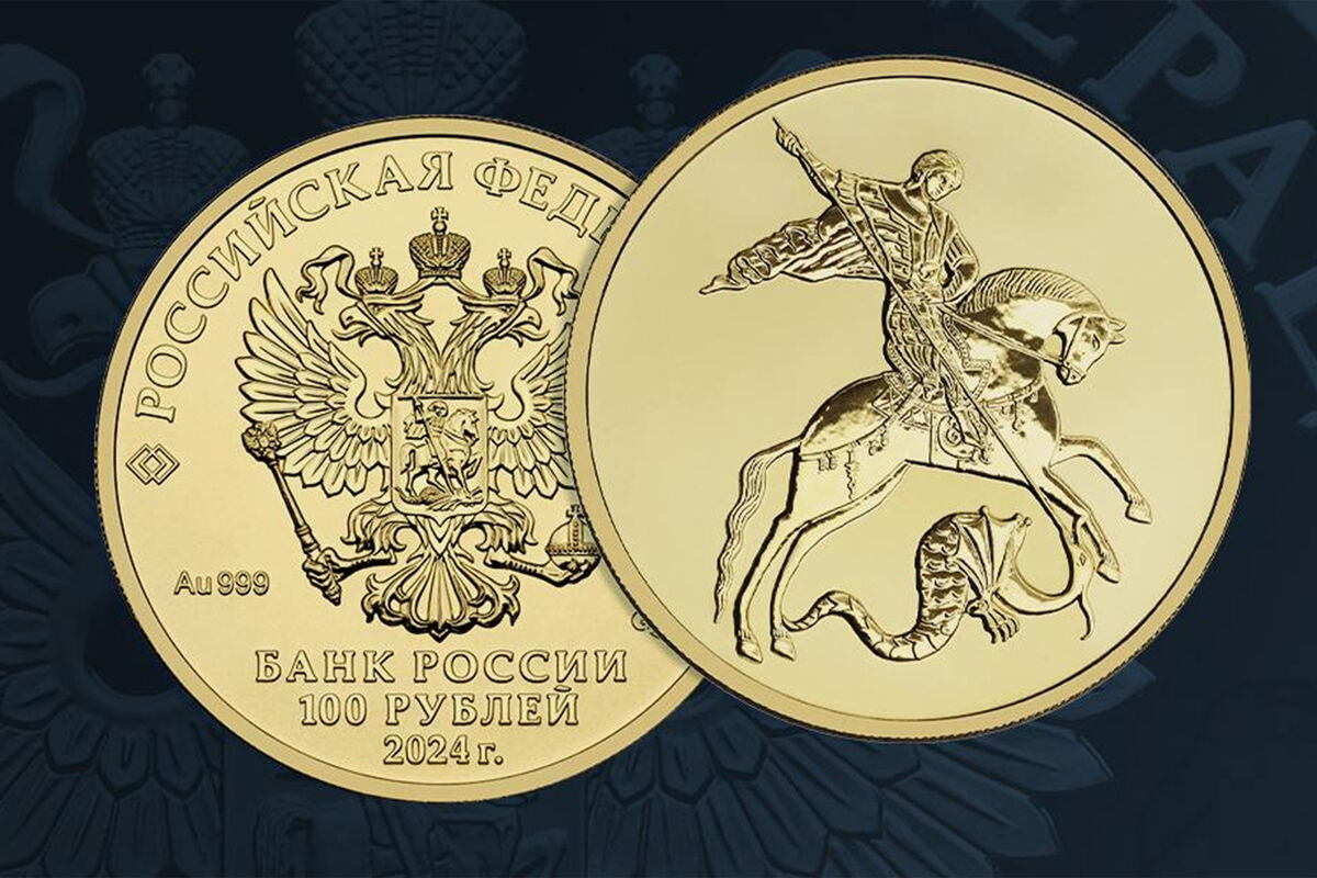 Банк России выпустил золотую монету номиналом 100 рублей с изображением Георгия Победоносца. Об этом сообщается на сайте регулятора.