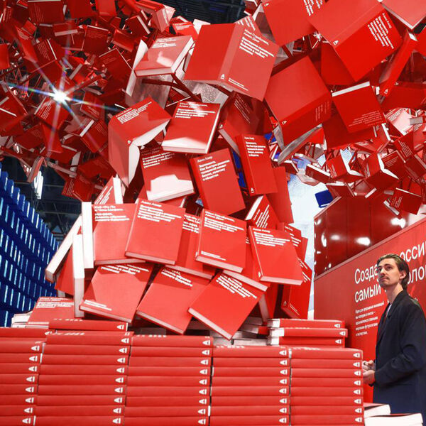 Центральным элементом стенда стал вихрь из 18 тыс. мировых бестселлеров.