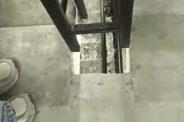 На видеозаписи видно, как вода бурным потоком стекает по ступенькам в подъезде.