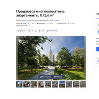 Как уточняется, в здании по адресу Котельническая набережная, 1/15кБ, возведенном в 1953 году, можно приобрести недвижимость общей площадью 872,6 кв. м. Она включает десять квартир с четвертого по восьмой этажи, три совмещенных и семь раздельных санузлов и 20-метровую кухню.