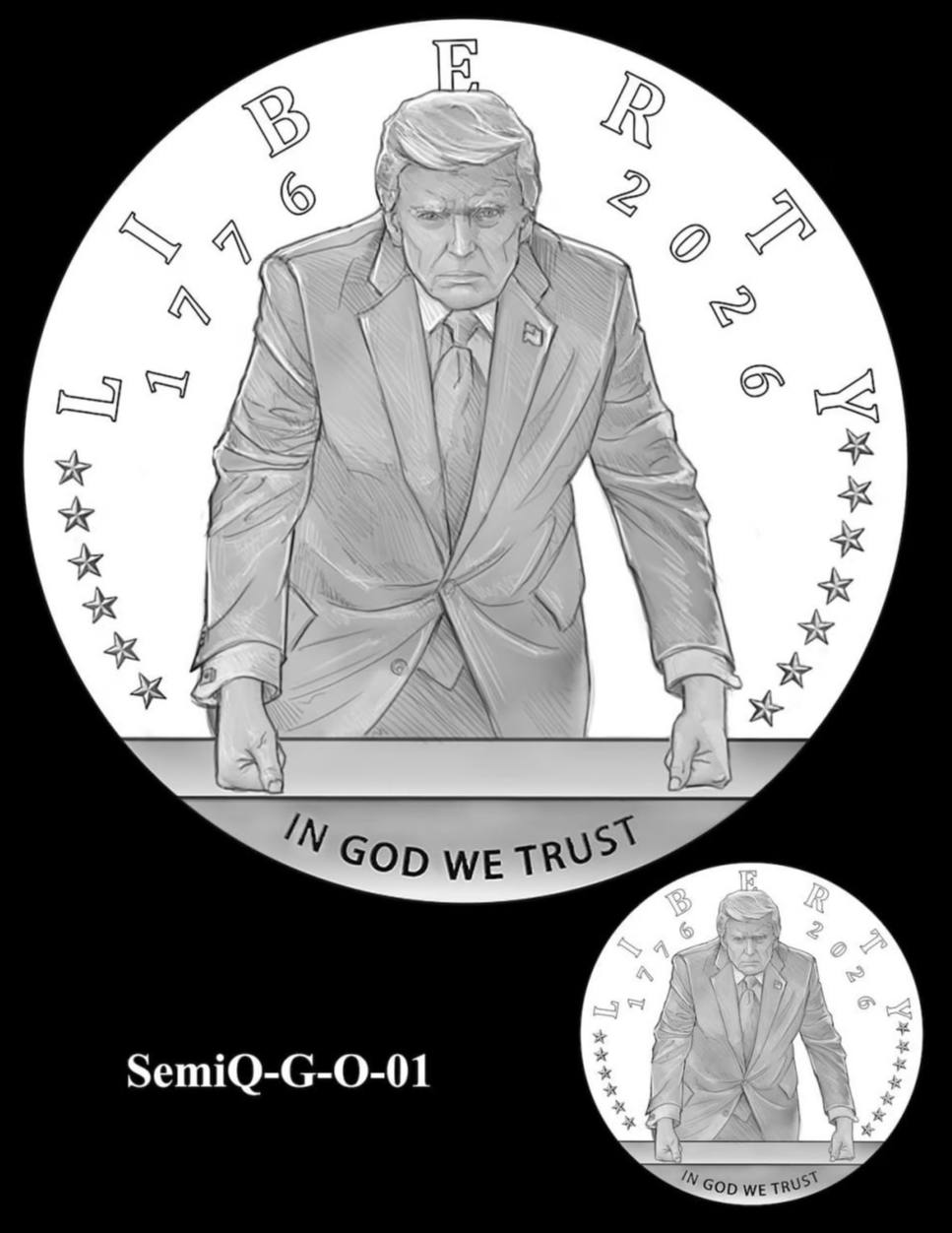 Дизайн памятного знака уже одобрен специальной комиссией. На аверсе монеты будет размещен портрет главы Белого дома за рабочим столом в Овальном кабинете, над ним — надпись «Liberty». Слева от изображения будут выбиты цифры 1776 (год принятия Декларации независимости), справа — 2026. В нижней части монеты нанесут традиционную надпись «In God We Trust» («На Бога уповаем»). На реверсе планируется изобразить американского белоголового орлана.