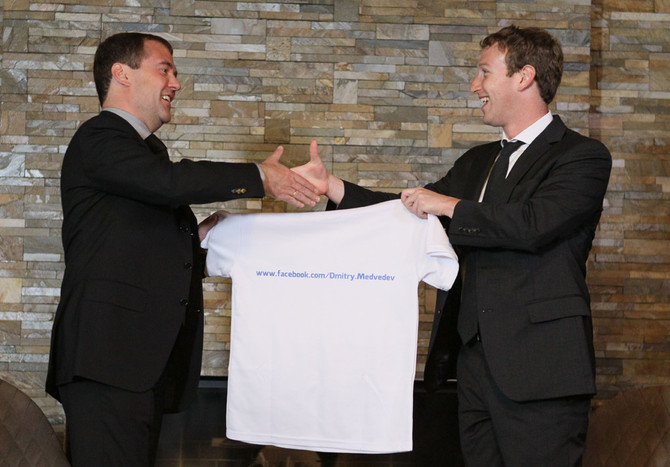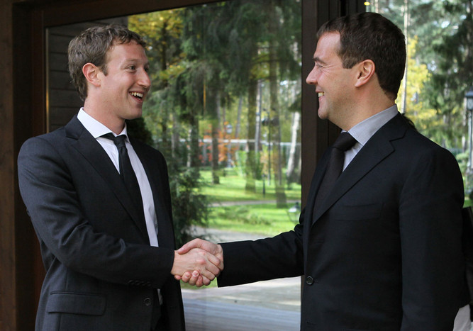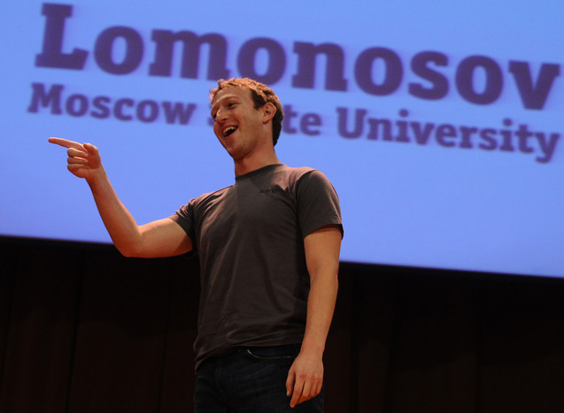 Марк Цукерберг посетил Россию. Основатель и глава крупнейшей в мире соцсети обсудил Дмитрием Медведевым развитие IT-бизнеса в России и подарил ему футболку с адресом странички премьер-министра в Facebook (владелец компания Meta признана в России экстремистской и запрещена). На следующий день молодой миллиардер прочел лекцию студентам МГУ, посоветовав им