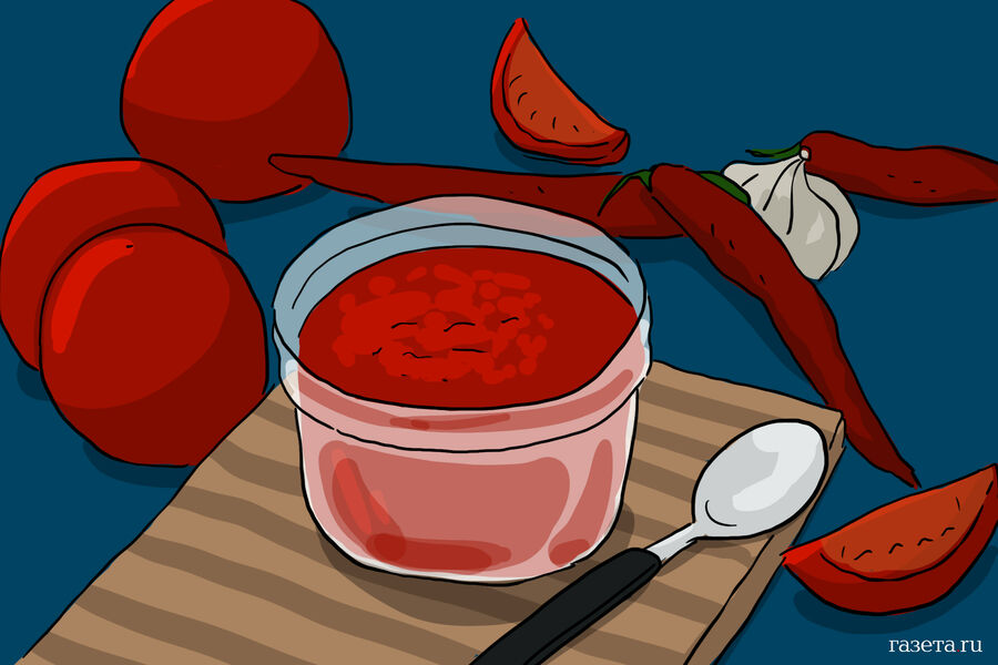 Донская приправа, эдакий казачий кетчуп. В самом своем элементарном виде – это просто пюре из соленых помидоров. Не хрустких зеленых, а мягких, распадающихся красных. Люди более изобретательные с чапрой экспериментируют – добавляют к соленым помидорам немного чеснока, зелени, каких-то специй. Самая базовая и необходимая добавка – это опять-таки соленые острые перцы. В чапре можно мариновать и тушить курицу или рыбу, с ней получается потрясающая яичница, ее можно просто подавать к столу, как тот самый кетчуп. На Дону чапру можно найти на каждом рынке.