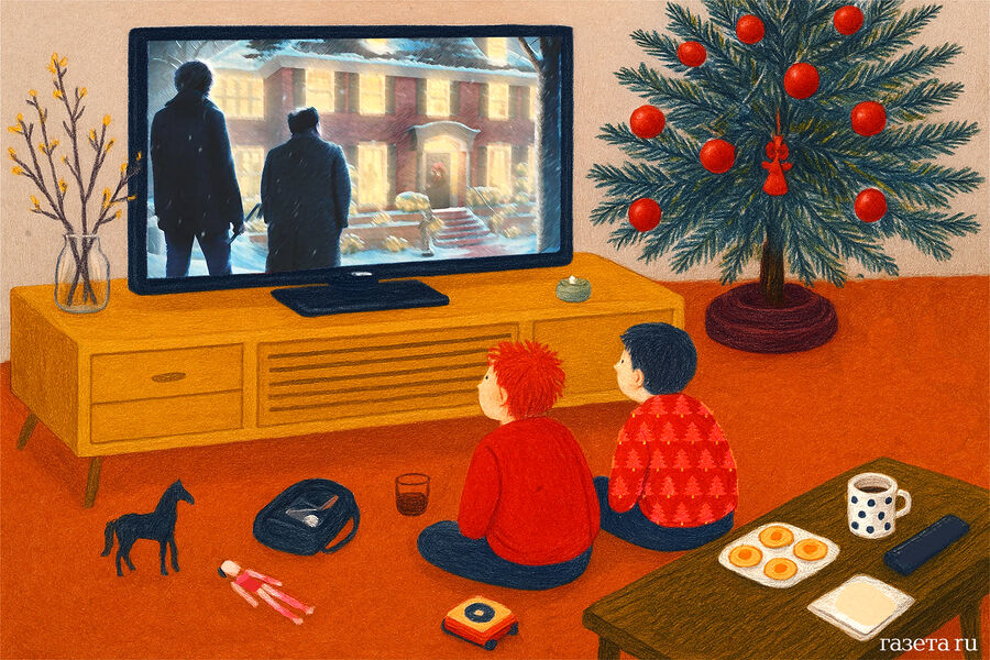 Так уж вышло, что знакомые нам истории формируют безопасное пространство. Тут как с чтением детективов или просмотром тру-крайма: мы оказываемся в очень контролируемых и предсказуемых обстоятельствах, где нам ничего по-настоящему не страшно, пусть мурашки по загривку и бегут. Знаем все сюжетные ходы; уверены, что преступник будет наказан, детектив найдет виновных. С пересмотром любимых фильмов под Новый год все то же самое. Длинные праздники, особенно в России, — это пространство некоторого рода лиминальное: мы завтракаем остатками салатов, забываем, какой сегодня день, ложимся в шесть утра, а встаем уже к вечеру. И точно знаем, что в эти дни все спокойно: не ждем громких ужасных новостей, помним, что на работу (ладно, хотя бы тем, кто существует на пятидневке) идти еще не скоро. Можно наконец отдохнуть от тумаков 12 братьев-месяцев. Пока не пришли новые и не стали бить дедлайнами, проблемами, задачами пуще прежнего.