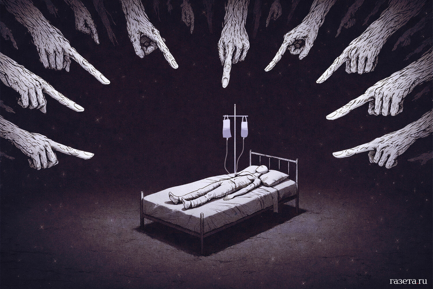 Диагноз — это та красная линия, за которой должно исчезнуть все: политические разногласия, классовое неравенство и тем более моральное превосходство. Но нет, едва новость разлетелась по каналам, как включился тот самый механизм, который лучше любой антиутопии характеризует современное общество. Механизм «божественной справедливости» в исполнении толпы. «Сама виновата», «заслужила», «мужское проклятие», «деньги за рубеж уводила», «с женатым спала» — вот неполный перечень комментариев под сводками о тяжелой болезни матери четверых детей, последний из которых родился месяц назад.