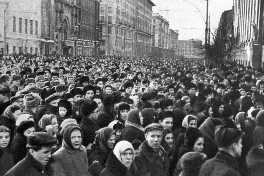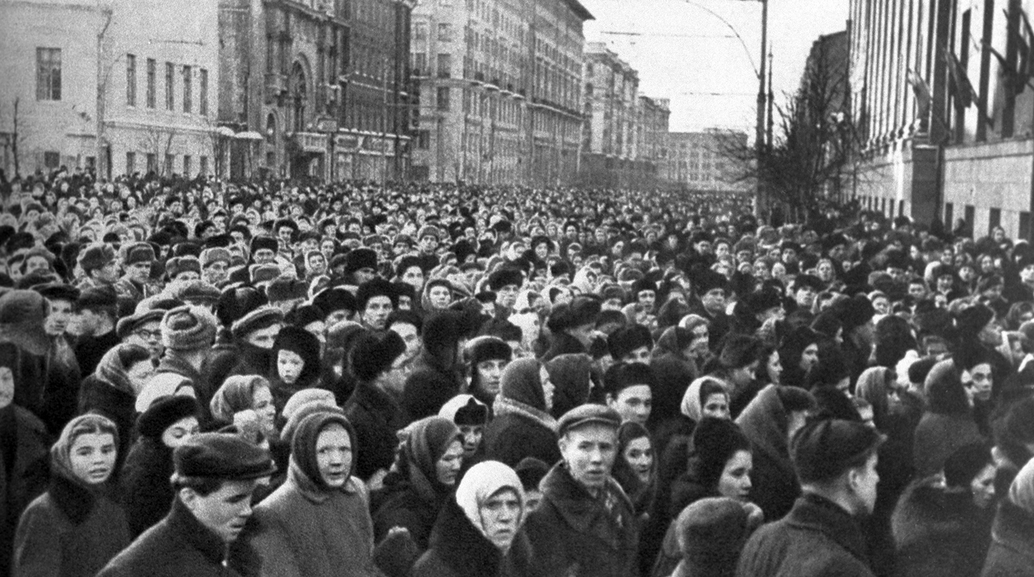 Людям разрешили говорить, чтобы они могли излить свое горе. И люди говорят, навзрыд. Также людям разрешили увидеть тело любимого вождя во гробе, никто не ограничивал допуск на подступах к Москве. При этом 6 марта 1953 года двери Колонного зала закрыты для обычных посетителей, пропускают только официальные делегации. А маршрут следования по центральным улицам плотно оцеплен, военными грузовиками перекрыты переулки, толпе не дают растечься в стороны.