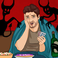 Со скрипом открывается дверь. Из нее на груде пустых бутылок выезжает из какого-то чулана дядя. Зеленые черти с криками: «Будни, будни давай!» – бегут в ужасе от празднующего. Аж чертей воротит.