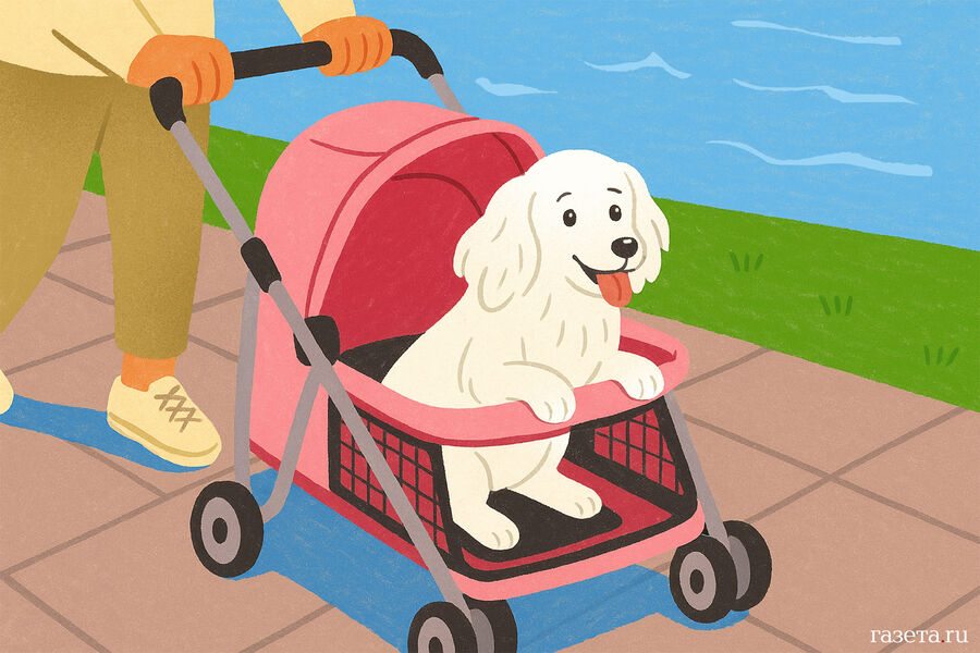 Есть и более странные примеры. Так, я видела в питерской «Ласточке» девушку с собакой в коляске. В собачьей коляске! Оказывается, уже продают коляски для собак, они чуть меньше детской и плотно накрываются куполом. Коляска устлана пеленками, украшена ленточками, погремушками. Собака — в вязаном костюмчике. Я серьезно. Самое интересное, что я видела эту девушку по дороге в Великий Новгород, куда ехала и сама, а потом встретила собачницу в музее кремля: она с боем прорывалась смотреть берестяные грамоты вместе с собакой в коляске.