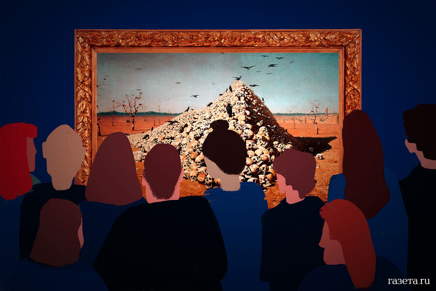 Про выставку Архипа Куинджи в прошлой колонке вспоминала. Толпы! Пять маленьких залов, иные работы крошечные. Посетителей столько, что мы 20 минут в очереди стояли, взяли билет на восемь вечера, а там и в девять пускали. Чуть не до ночи идут и идут. Билет 600 рублей. Из-за людей ничего не увидеть вообще! Ну вообще! Многие снимают видео, болтают по видеосвязи! Полуголые девицы делают селфи! Один стенд с краткой биографией Куинджи: родился, поселился, умер. Давно на таких выставках нет информационных материалов: зачем, если люди не читают? На выставке Васнецова были интерактивные материалы с рассказами о картинках. С грамматическими ошибками! Потому что массы готовят для масс. И нанимают уже музеи специально таких специалистов по массам. Они придумывают, как больше заманить в музей людей, которые будут делать у картин селфи и болтать по телефону.