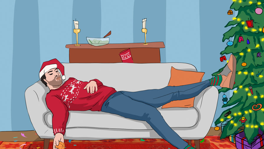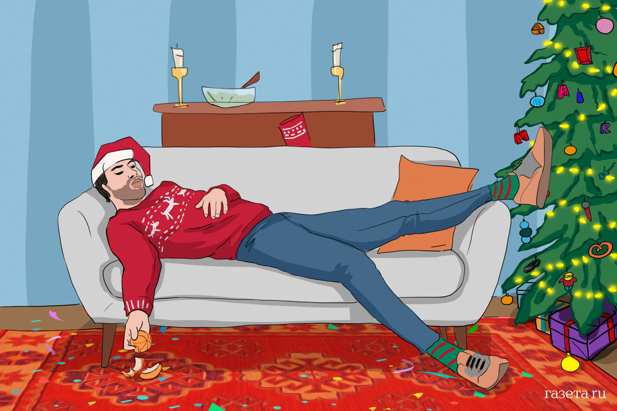 Проснулись в кожуре от мандаринов, голова болит, в углу елка мигает. Господи, да выключи ты эту елку. И Господи выключает.