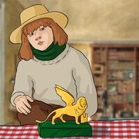 Она отпиливает золотому венецианскому льву его лапу, а та оказывается гипсовой.