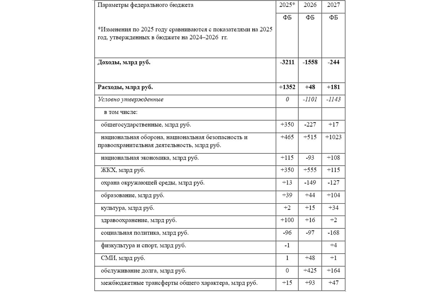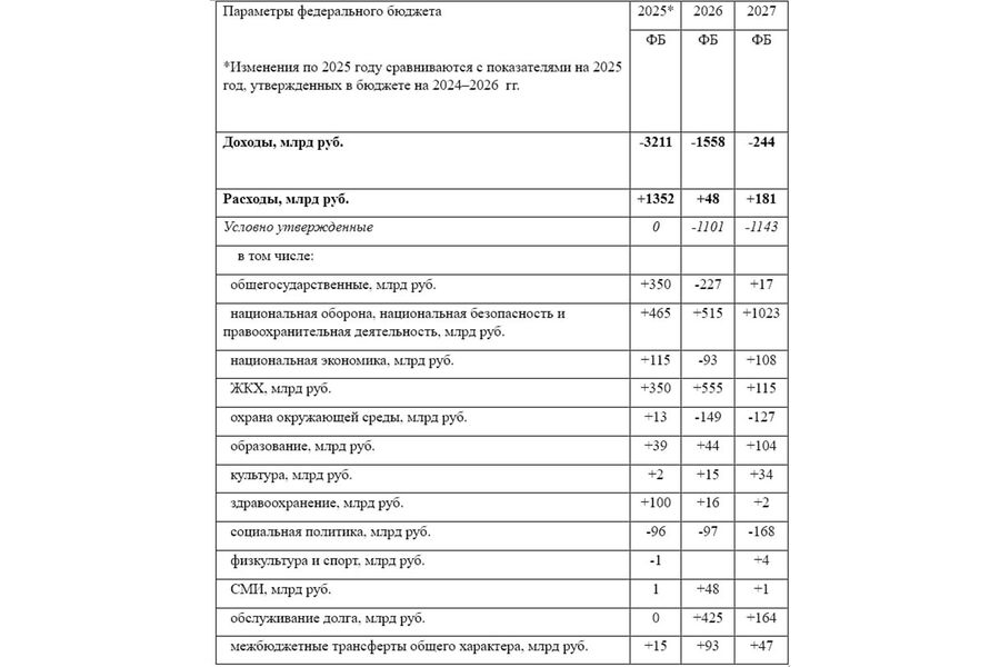 Планируемый уровень расходов был существенно увеличен относительно закона о федеральном бюджете на 2025–2027 гг.