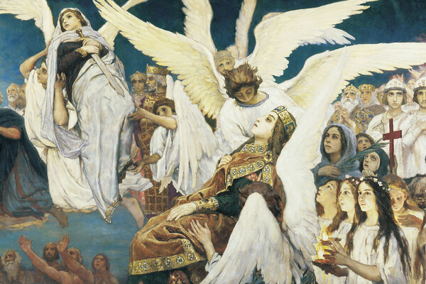К этому сюжету обращался русский художник Виктор Васнецов в своей работе «Радость праведных о Господе». На картине святые, облаченные в белые одеяния, замерли среди сонма праведников и ангелов, которые указывают им путь в райские обители. Художнику удалось тонко передать глубокую человечность момента: даже в преддверии небесного блаженства девочки тянутся к матери, словно ища у нее защиты и не веря до конца, что земные муки остались позади.