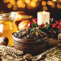Вечером 6 января, когда на небе загорается первая звезда, верующие начинают праздничную трапезу и пробуют сочиво (кутью) — сладкую кашу из зерна с орехами, сухофруктами и медом.