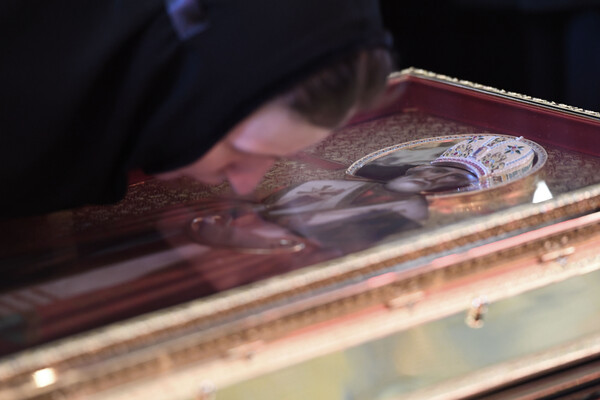 На твое бо ходатайство уповающе, твоим предстательством хвалимся, твое заступление на помощь призываем и ко пресвятому образу твоему припадающе помощи просим: избави нас, угодниче Христов, от зол находящих на нас, да ради святых твоих молитв не обымет нас напасть и не погрязнем в пучине греховней и в тине страстей наших.