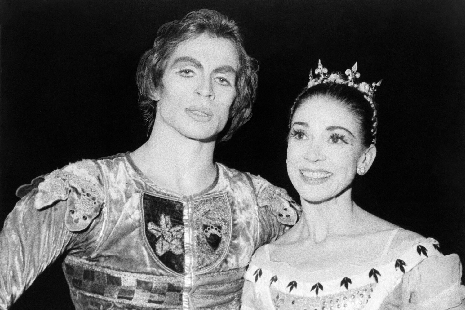Артисты балета Рудольф Нуреев и Марго после выступления с труппой Королевского балета в постановке «Спящей красавицы» в Метрополитен-опера в Нью-Йорке, 22 апреля 1970 года