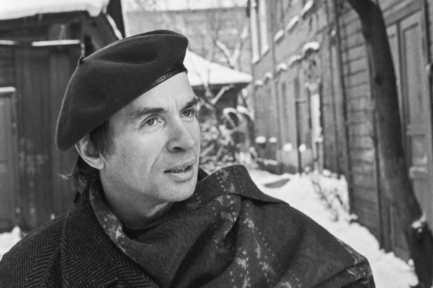 Рудольф Нуреев в Уфе во дворе дома по улице Зенцова, где жила семья Нуреевых, 1987 год