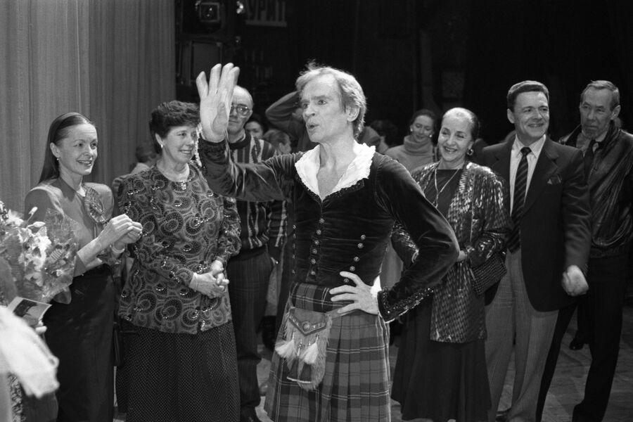 Рудольф Нуреев в роли Джеймса после выступления в балете «Сильфида» на музыку Германа Левенсхольда в Ленинградском академическом театре оперы и балета имени С. М. Кирова, 1989 год